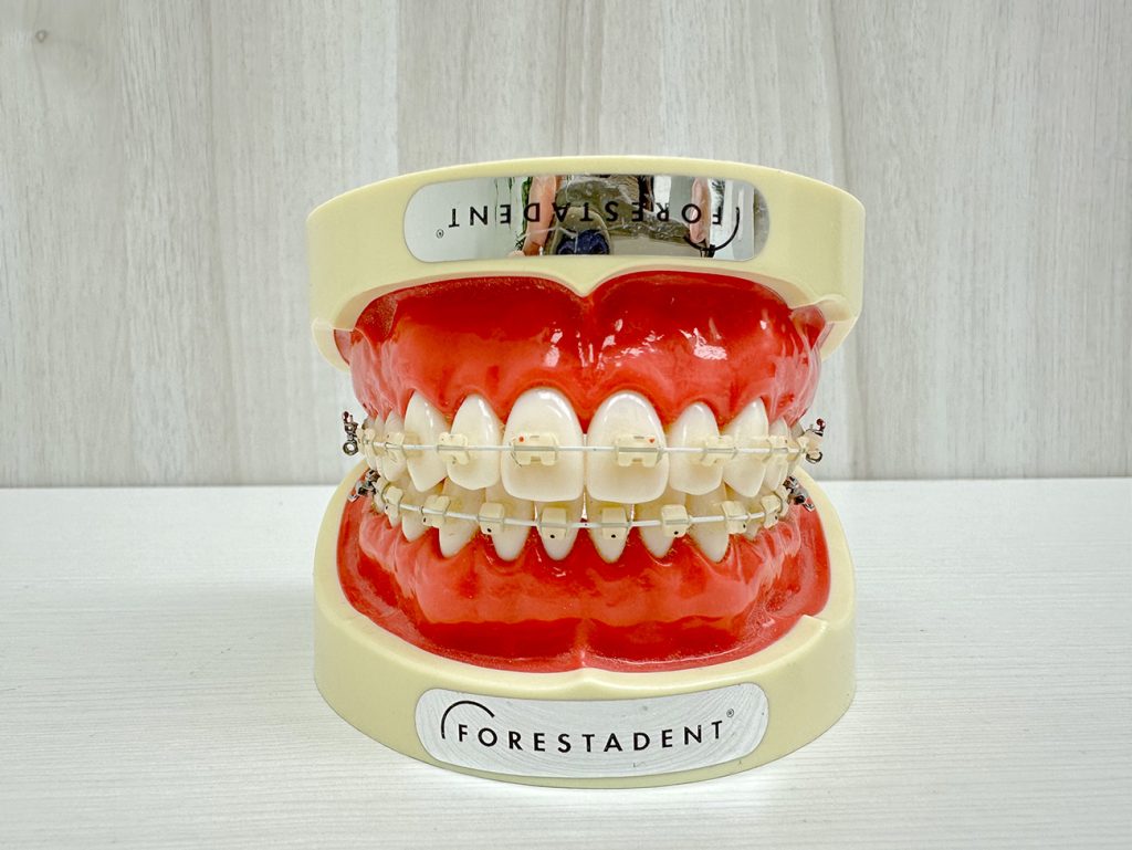 傳統牙套必須黏著在牙齒上,藉由金屬線、橡皮筋的拉力提供牙齒移動的力量,幫助牙齒移到正確的位置。每次回診追蹤時,醫師會調整金屬線讓牙齒逐步移動到正確位置,回診後2-4天會因為牙齒被拉緊而酸軟,造成進食較不易。